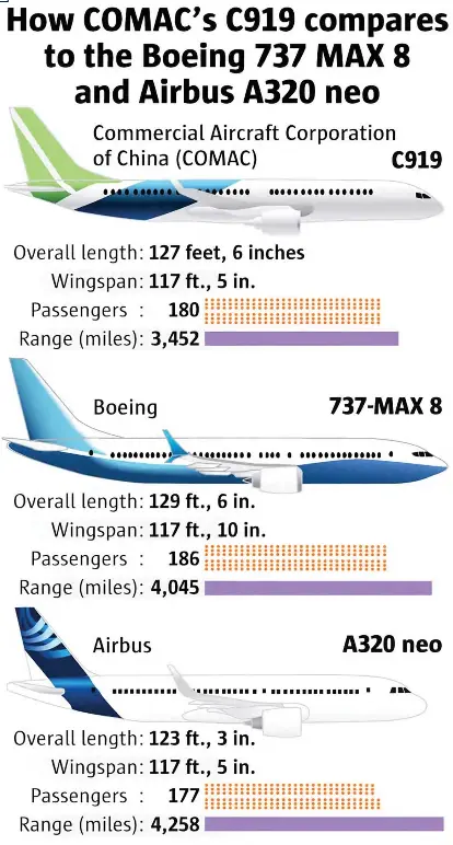 A Commercial Aviation Corp of China (COMAC) começou a desenvolver o C919 há 15 anos para rivalizar com as famílias de jatos de corredor único da Airbus (AIR.PA A320neo) e Boeing (BA.N 737 MAX). O presidente Xi Jinping aclamou o projeto como uma das melhores realizações inovadoras da China.