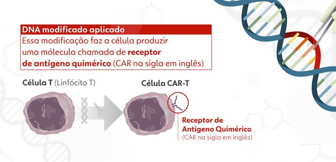 Para isto, as células chamadas de linfócitos T são recolhidas do paciente, modificadas geneticamente em laboratório para reproduzir a molécula chamada receptor de antígeno quimérico (CAR) e multiplicadas aos milhões antes de serem devolvidas ao corpo para combater os tumores sem afetar as células normais.