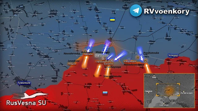 Eis como os combatentes da 46ª brigada da Ucrânia avaliam a direção de Melitopol: “O próximo é Novoprokopovka e provavelmente é isso. Mais adiante está a principal linha de defesa dos russos. Além disso, uma cunha profunda na área de Rabotino seria uma oportunidade para os invasores nos atingirem no flanco a partir das áreas de Kopan e Novofedorovka. E então teríamos que expandir a frente na direção de Nesteryanka-Kopan e Belogorye, ou obteríamos algo semelhante ao que poderíamos ter conseguido em Bakhmut – envolvimento de flanco com cerco.” Isto significa que os ucranianos não esperam romper a primeira linha de defesa escalonada da Rússia nesta área.