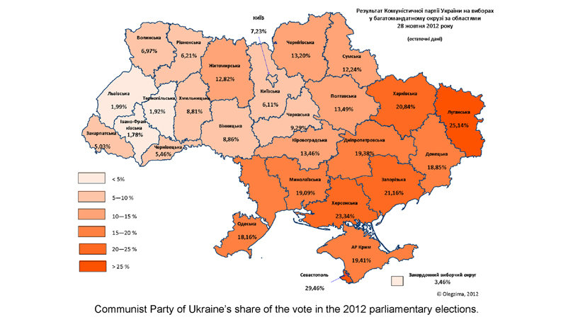 O governo ucraniano intensificou ainda mais a perseguição aos comunistas após a eclosão da guerra civil nas regiões orientais da Ucrânia, Donetsk e Lugansk, em 2014-15. O CPU tinha apelado a uma solução federalista para as divisões dentro da Ucrânia nos primeiros dias da guerra civil e ao fim da repressão dos russos étnicos no leste, prenunciando os Acordos de Minsk. Estes últimos pretendiam parar os combates em Donetsk e Lugansk, concedendo autonomia a essas áreas, mas o governo de Kiev nunca cumpriu os acordos.