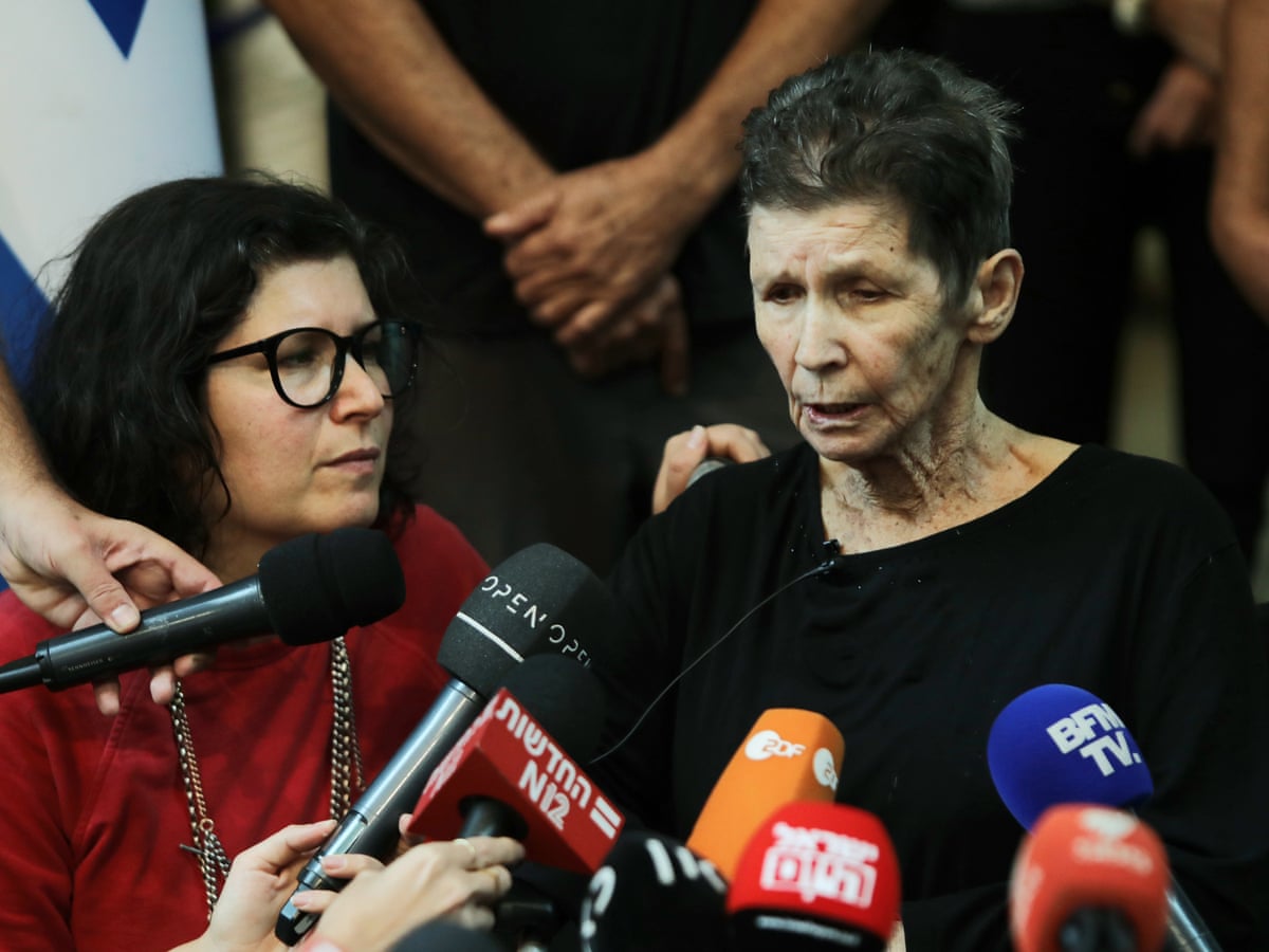 “A sensação que tínhamos ali era que ninguém estava fazendo nada por nós. O fato é que eu estava em um esconderijo que estava sendo bombardeado e tivemos que ser contrabandeados para fora e ficamos feridos. Sem incluir o helicóptero que disparou contra nós a caminho de Gaza. Você afirma que há inteligência, mas o fato é que nós, os reféns, estamos sendo bombardeados. Meu marido foi separado de nós três dias antes de retornarmos a Israel e fomos levados para os túneis. E você está falando em inundar os túneis com água do mar? Você está bombardeando a rota dos túneis na exata área onde eles estão.”