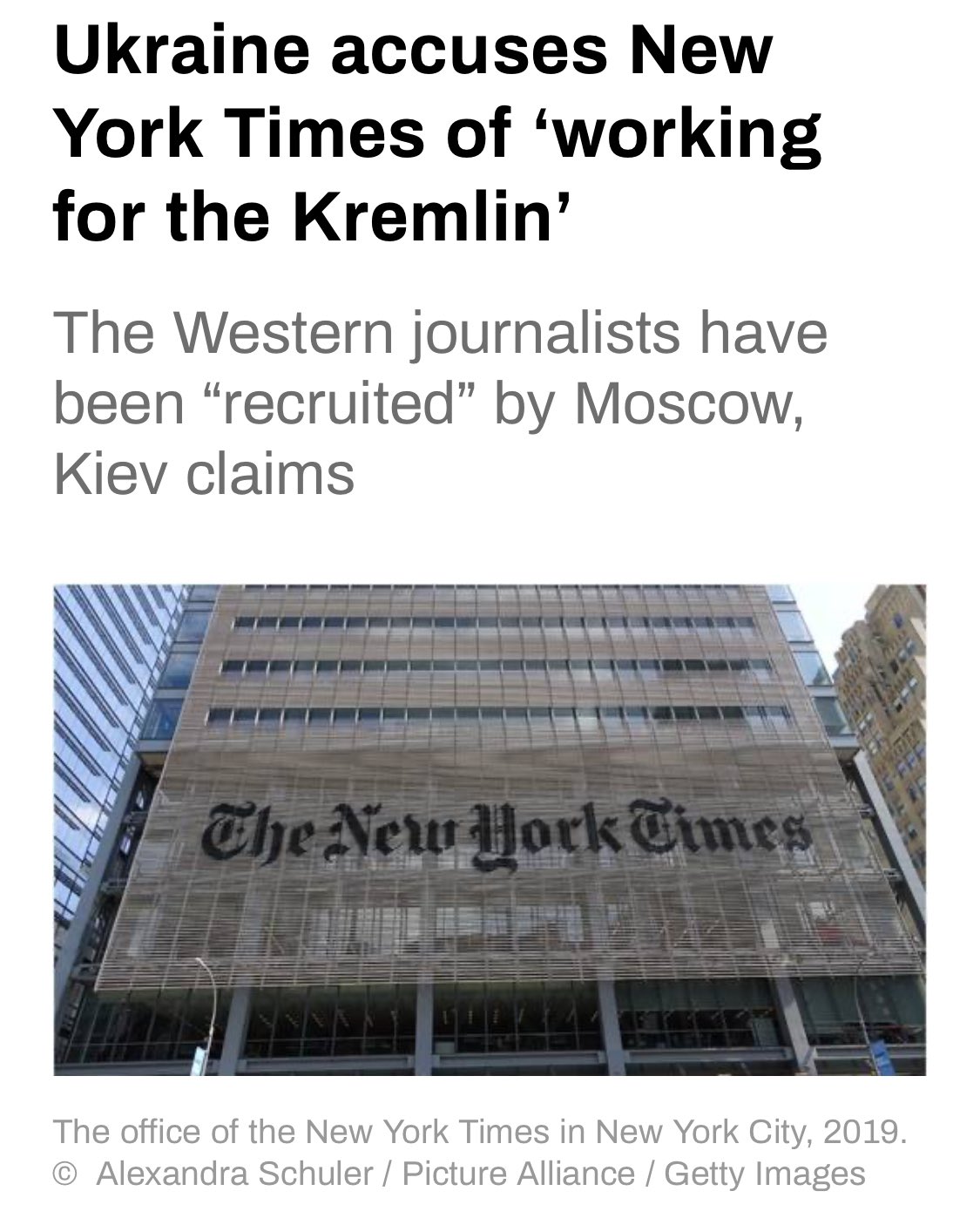A história publicada pelo New York Times no sábado lista o chefe da sucursal em Moscou, Anton Troianovski, junto com os redatores Adam Entous e Julian E. Barnes, na assinatura.