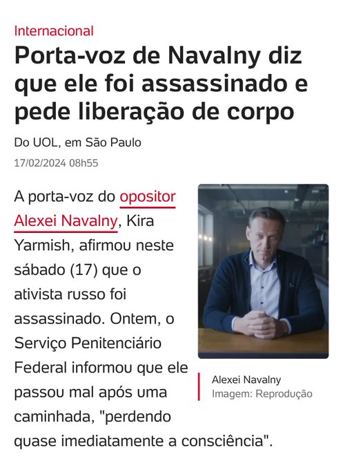 Alexei Navalny, o mais querido do Ocidente, que morreu na prisão em Moscow, teve seu falecimento já determinado como assassinato.