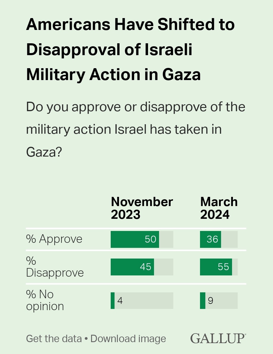 Pouco menos de um quarto (23%) apoiou “fortemente” o plano, ao qual apenas 16% se opuseram, mas a política não aumentou a opinião positiva dos eleitores sobre a forma como Biden lidou com a crise de Gaza.