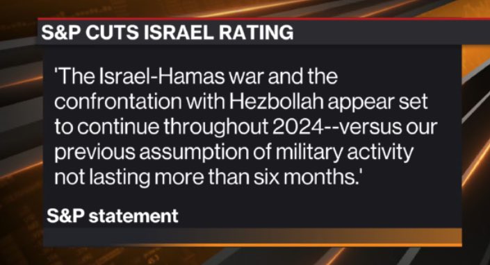 A S&P explicou que a perspectiva negativa refletia o “risco de que a guerra Israel-Hamas e o confronto com o Hezbollah pudessem aumentar ou afectar os parâmetros económicos, fiscais e da balança de pagamentos de Israel de forma mais significativa do que esperamos actualmente”.