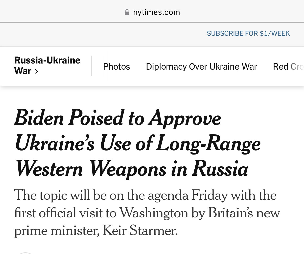 "Biden Poised to Approve Ukraine’s Use of Long-Range Western Weapons in Russia"