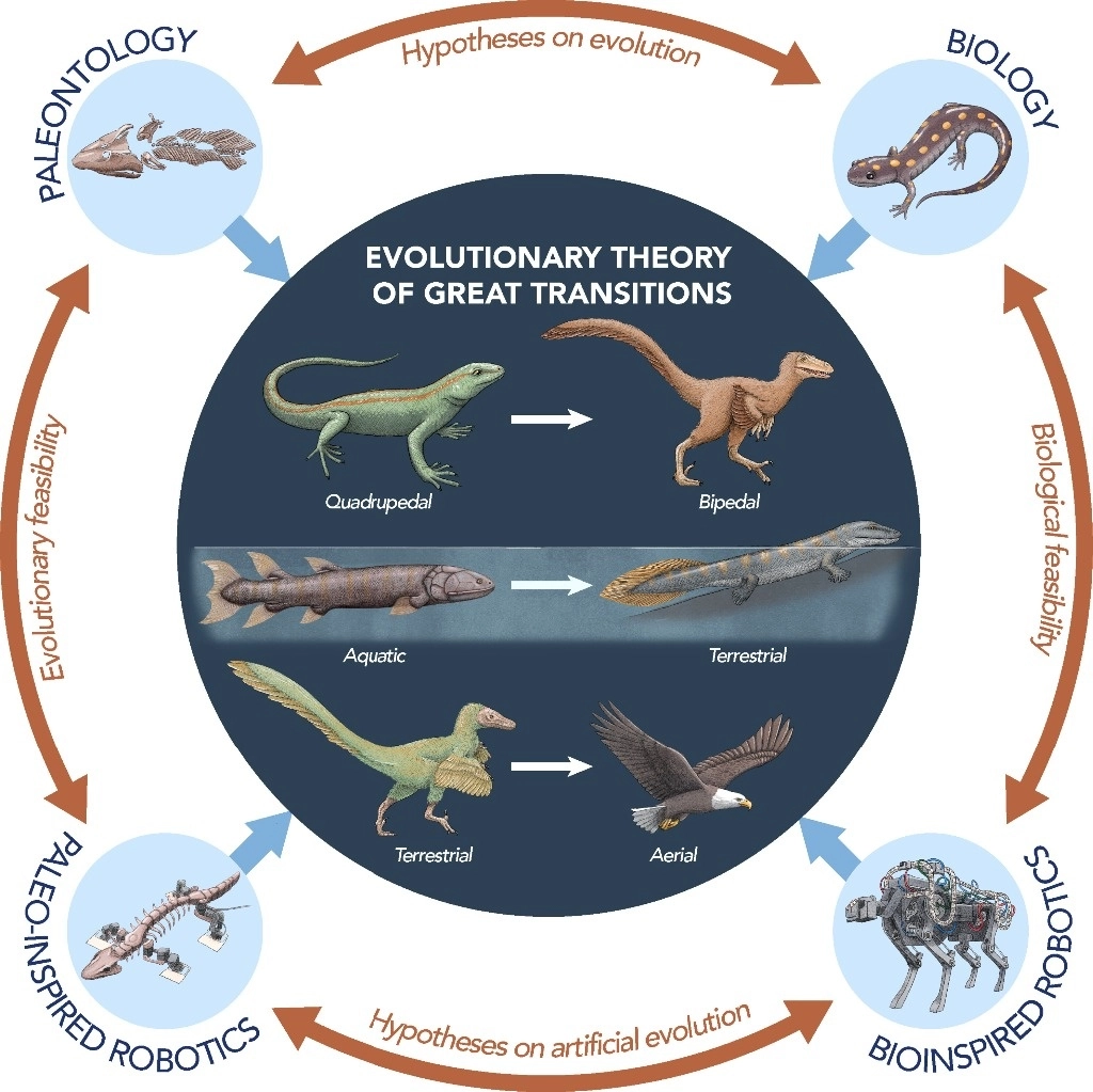 Especialistas em robótica, paleontólogos e biólogos estão usando robôs para estudar como os ancestrais dos animais terrestres modernos passaram da natação para a caminhada há 390 milhões de anos.