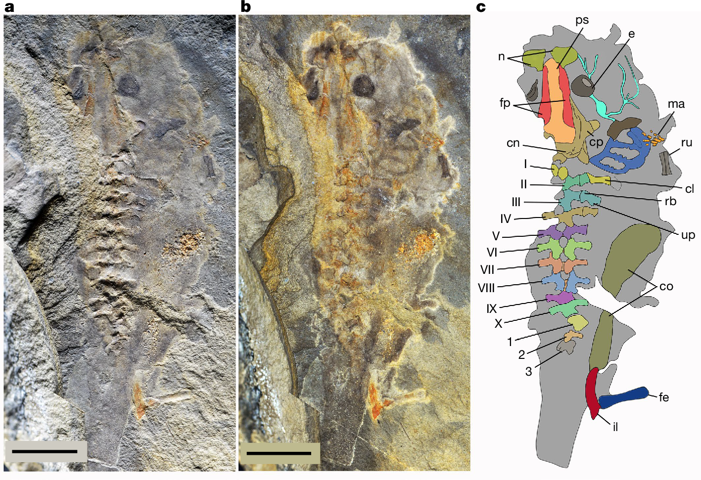 Possui restos de tecidos moles, como nervos ou olhos, mas também uma característica fundamental que foi preservada é o esqueleto hiobranquial. Isso significa o esqueleto cartilaginoso que sustenta as guelras de um girino. Isto é muito importante, pois permite conhecer a alimentação e o estilo de vida destes organismos, explicou.
