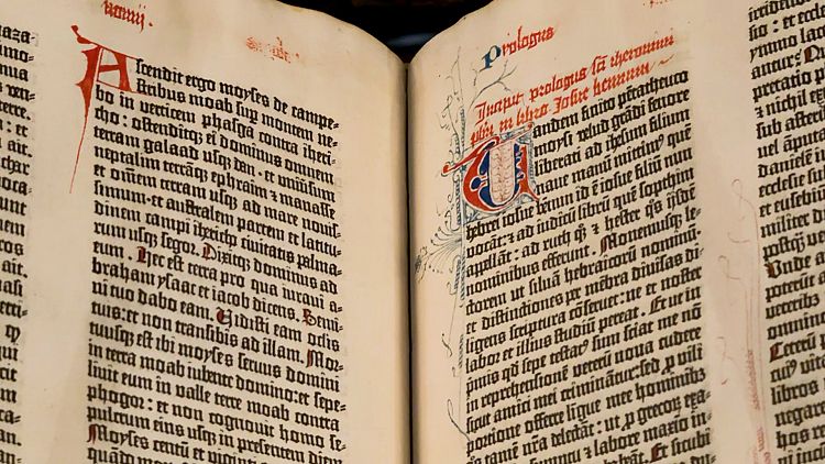 Imagens de pessoas com códices nas mãos e inscrições em pinturas medievais têm como objetivo ajudar os visitantes a perceber o quão importante um livro era naquela época.