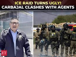 Em Carpinteria, na Califórnia, o deputado democrata Salud Carbajal teve acesso negado ao local da operação. Um dos dois vereadores que também estavam presentes caiu e machucou o braço em uma altercação entre manifestantes e policiais, informou o The Independent .